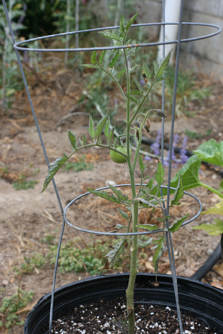 I sigh… as I look at the one sad little tomato that is trying so desperately to survive.
