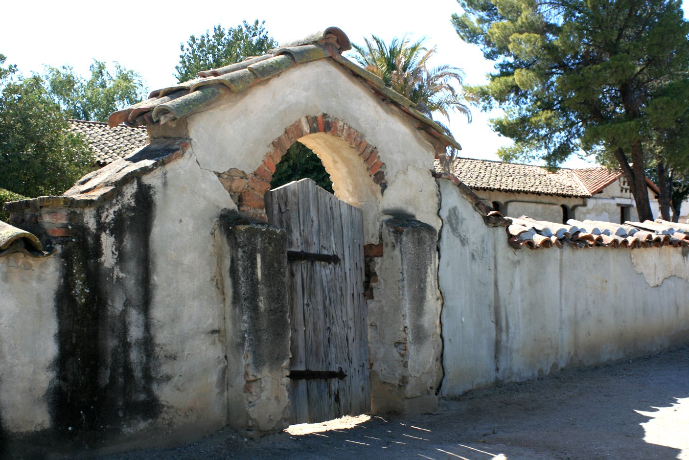 I took a walk around the exterior grounds first to try to gain some perspective.  I love to photograph gates and parts of the adobe structure.  009In the back of my mind, I imagined a story about all of the people who had visited the mission and how it must have looked two hundred years ago.  The courtyard was beautiful.  Every entrance and gate had the amazing architecture of the old adobes, which reeked of history.  I then meandered around, walked through the church, and then ended up in the graveyard near the bell tower.
