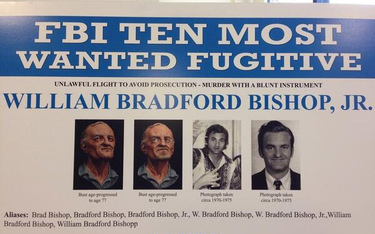 William Bradford Bishop is wanted by the Montgomery County Police Department in Maryland for the murder of five of his family members. He allegedly left work early one day and, after stopping at the local mall to make purchases including a gas can and metal mallet, headed home to kill his wife, his three sons and his mother. It is believed that Bishop then loaded the bodies into the family’s station wagon and drove to North Carolina. The five bodies were found by a park ranger burning in a shallow grave.